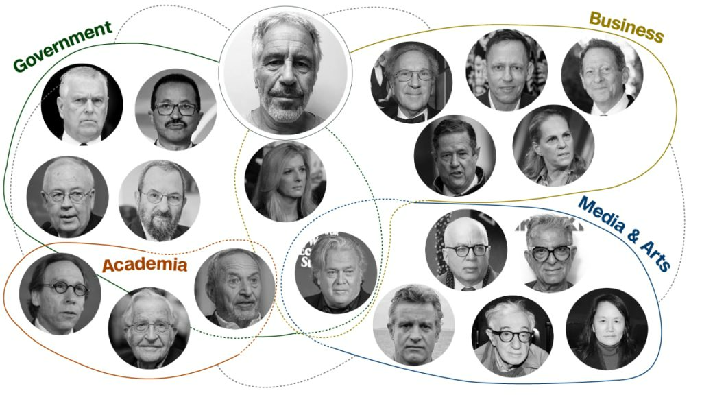 د اپسټین د ملګرو او پیژندګلوۍ په حلقه کې د متحده ایالاتو او نورو هیوادونو اوسني او پخواني چارواکي شامل وو، پشمول د پخوانیو دولتونو مشران، لوی سوداګر او د تفریحي صنعت ستوري.