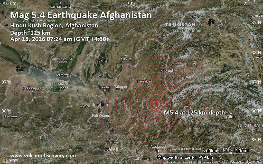 د دید خبري اژانس: د اروپا د مدیترانې د زلزلې مرکز (EMSC) اعلان وکړ چې نن سهار، د شنبې په ورځ، د حمل په ۲۹مه، د ۵.۴ درجې زلزلې د بدخشان ولایت ځینې برخې ولړزولې.